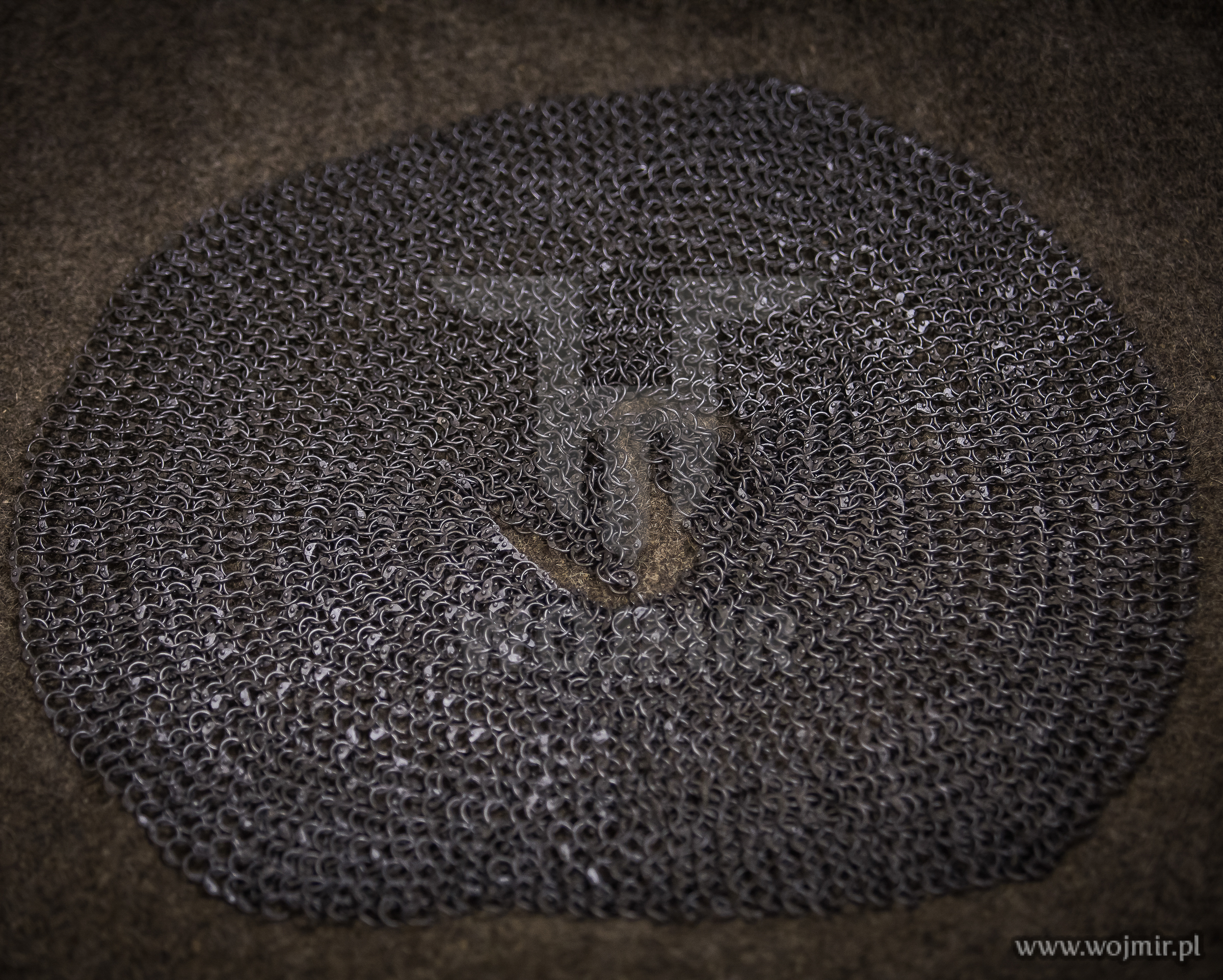 MAIL COIF / RIVETED HELMET AVENTAIL made of 10mm round section rings, round riveted. Aventail fits helmets with a maximum circumference of 70 cm. The length is about 24-25 cm. Aventail expands and adjusts very much.