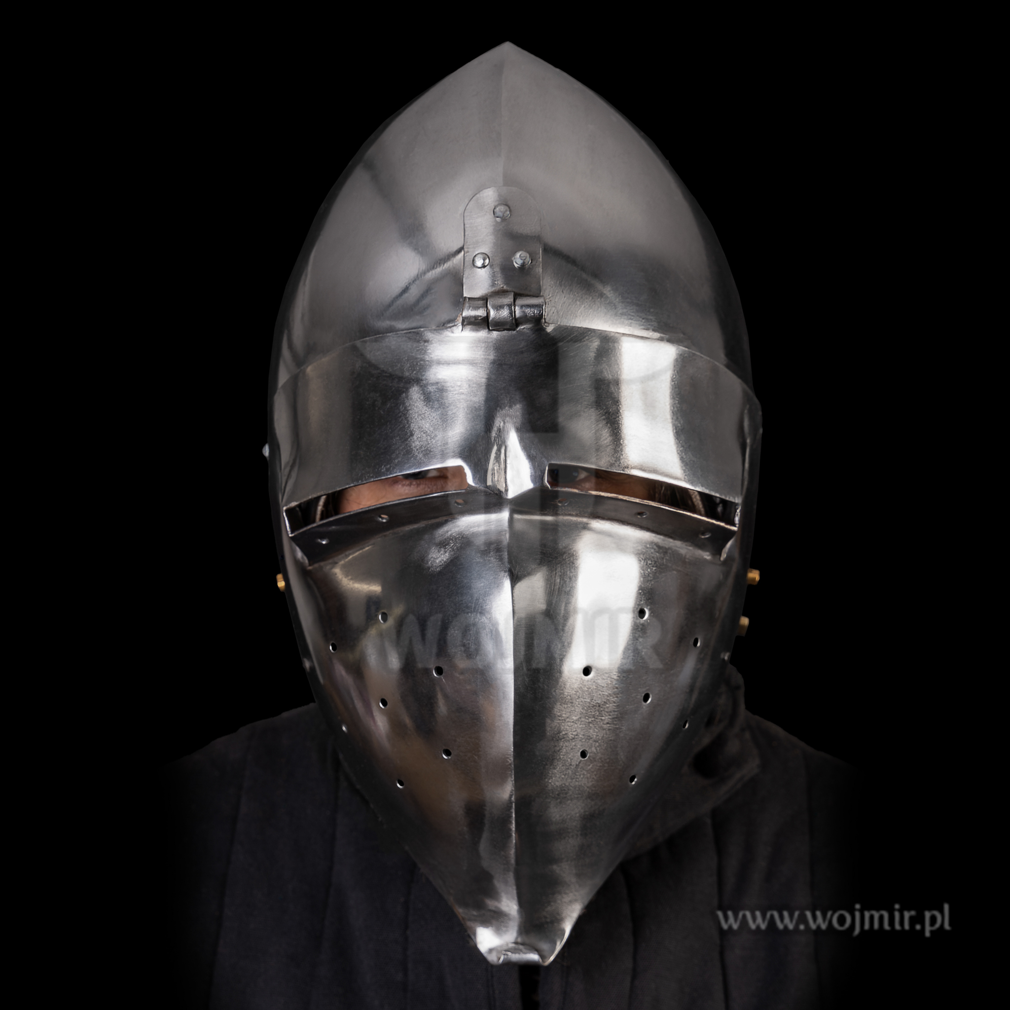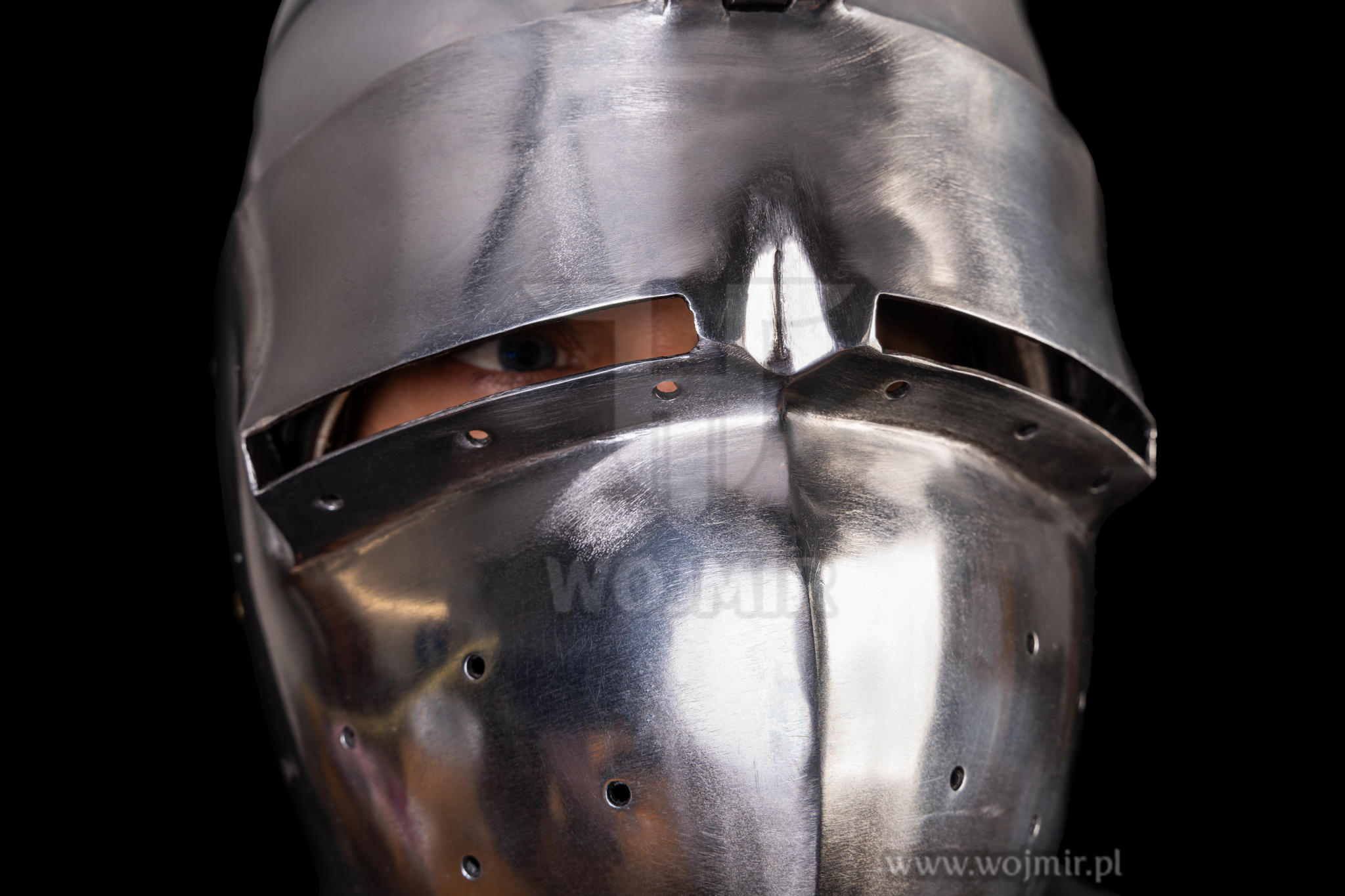 Zamów hełm Klappenvisier na wojmir.pl i zanurz się w świecie średniowiecznych bitew, pełnych rycerskich honorów i pasji do historii!