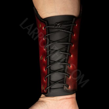 Karwasz dla lucznika. Cena dotyczy jednej sztuki. Obwód nadgarstka 17-23cm, przedramię 22-32cm, długość odpowiednio 16-24cm. Skórzany karwasz wykonany z naturalnej skóry bydlęcej garbowanej roślinnie o grubości 3-3,5 mm. Dzięki rzemieniom, które znajdziesz w zestawie, karwasz można idealnie dopasować do przedramienia. Ozdobiony pięknym tłoczonym wzorem. Będzie świetnie wyglądać zarówno na męskich, jak i damskich przedramionach. Idealnie nadaje się do rekonstrukcji historycznej LARP, RPG lub COSPLAY. Świetny do łucznictwa. Chroni Twoją dłoń przed uderzającą cięciwą. Zatem, entuzjaści średniowiecza, ten karwasz jest dla Was.